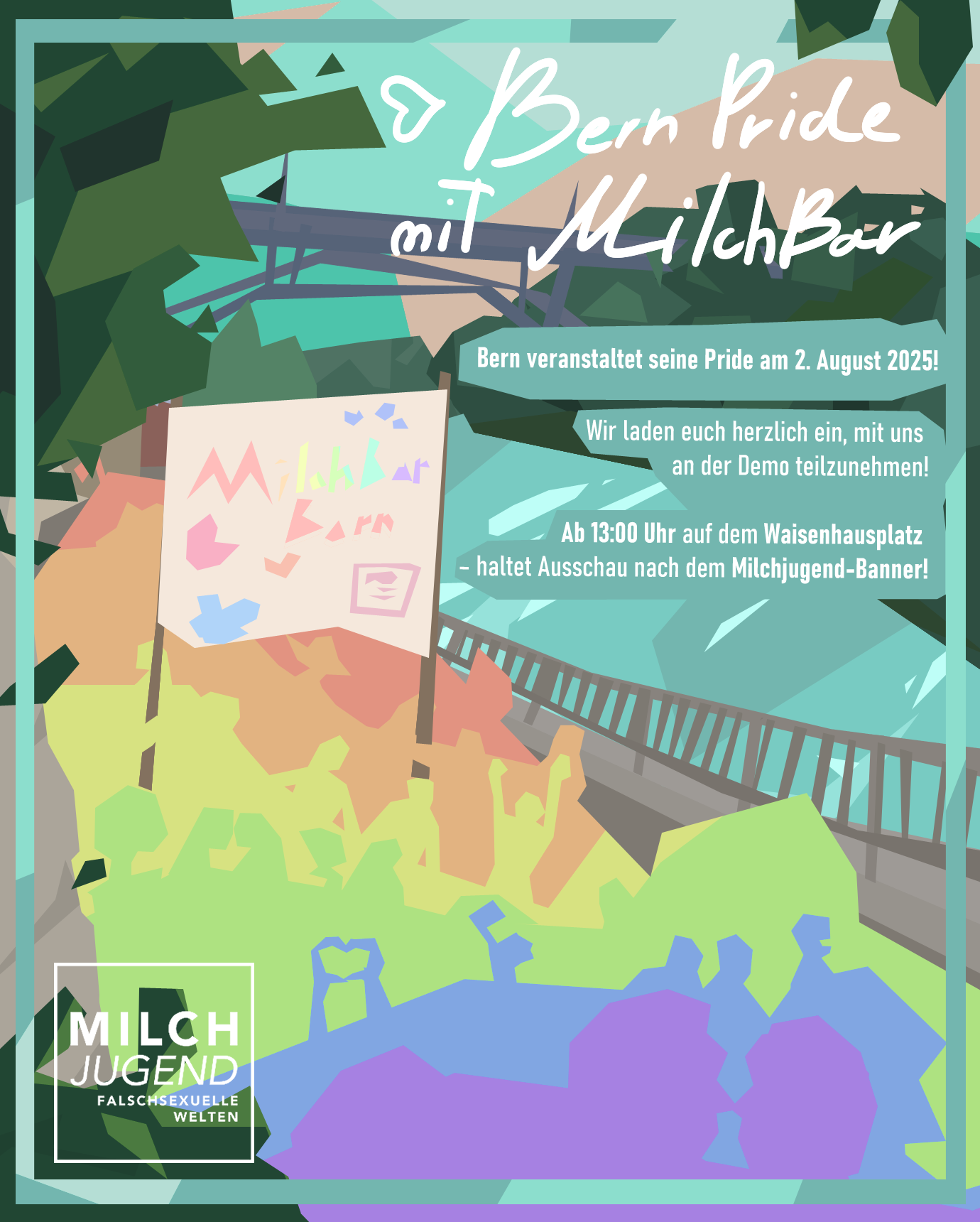 How to find us: Starting from 13:00 from Waisenhausplatz, you’ll be able to find us with the Milchjugend banner!