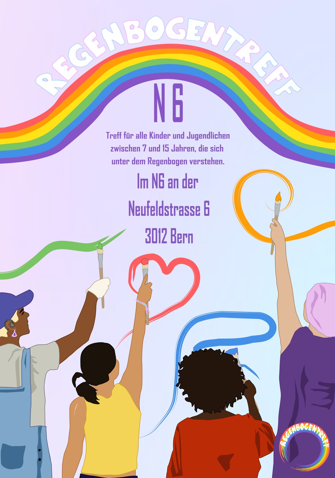 Wir sind fünf junge Erwachsene, die gemeinsam mit dem Leiter des N6 Events veranstalten. Auch ist der Regenbogentreff (d)ein «erweitertes Wohnzimmer» – hier kannst du ungezwungen Zeit mit interessanten Menschen verbringen, zeichnen, basteln, leckere Snacks essen, dich hinter Büchern vergraben, Musik hören und Vieles mehr. Und selbstverständlich darfst du deine Freund*innen mitbringen.