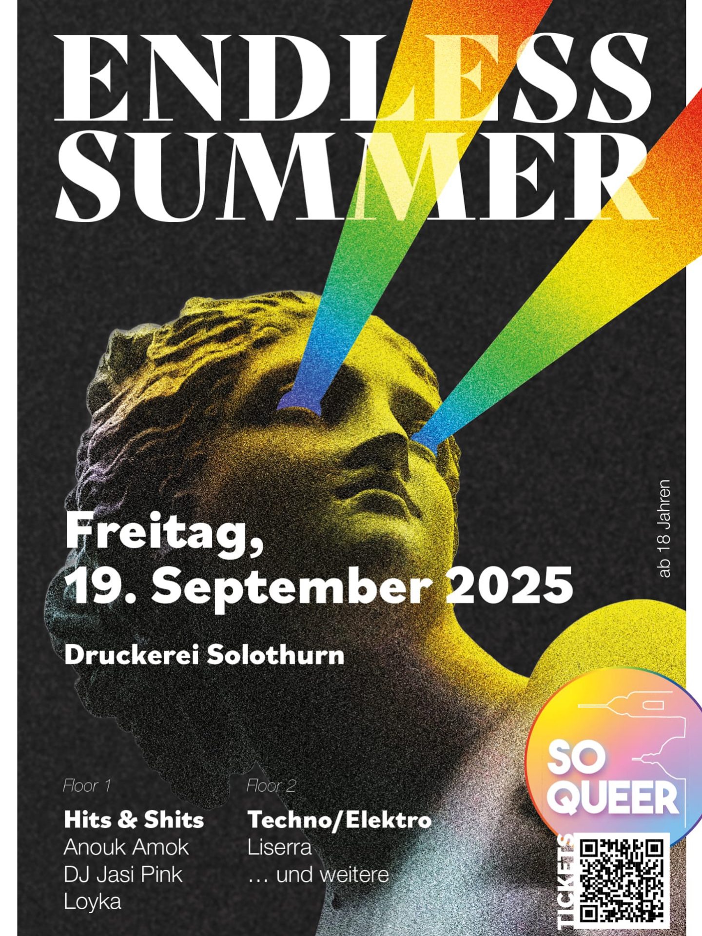 Der Sommer geht – aber wir verlängern ihn! Unter dem Motto «Endless Summer» bringt SO QUEER nochmals alle Farben, Beats und Vibes der warmen Jahreszeit zurück auf die Tanzfläche.