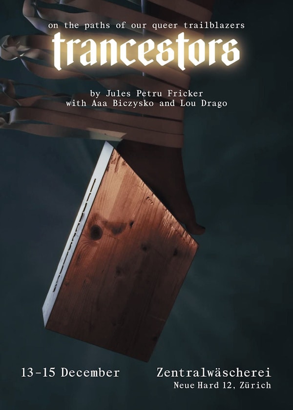 Trancestors – auf den Pfaden unserer queeren Wegebereiter*innen beschwört unsere queeren Vorfahren in einem Performanceritual herauf. Das Tanzstück, welches das 50-jährige Bestehen der wegweisenden “Gay Power”-Rede von Trans-Aktivistin Sylvia Rivera in New York zum Anlass nimmt, würdigt nicht nur die aktivistischen Bewegungen rund um das Stonewall-Aufbegehren, sondern auch die Schweizer LGBTQIA+ Geschichte, insbesondere der trans*-Ikone Coco. Jules Petru Fricker fängt zusammen mit Aaa Biczysko und Lou Drago (Musik) durch Video- und Audiofragmente die rohe Energie des queeren Widerstands ein.
