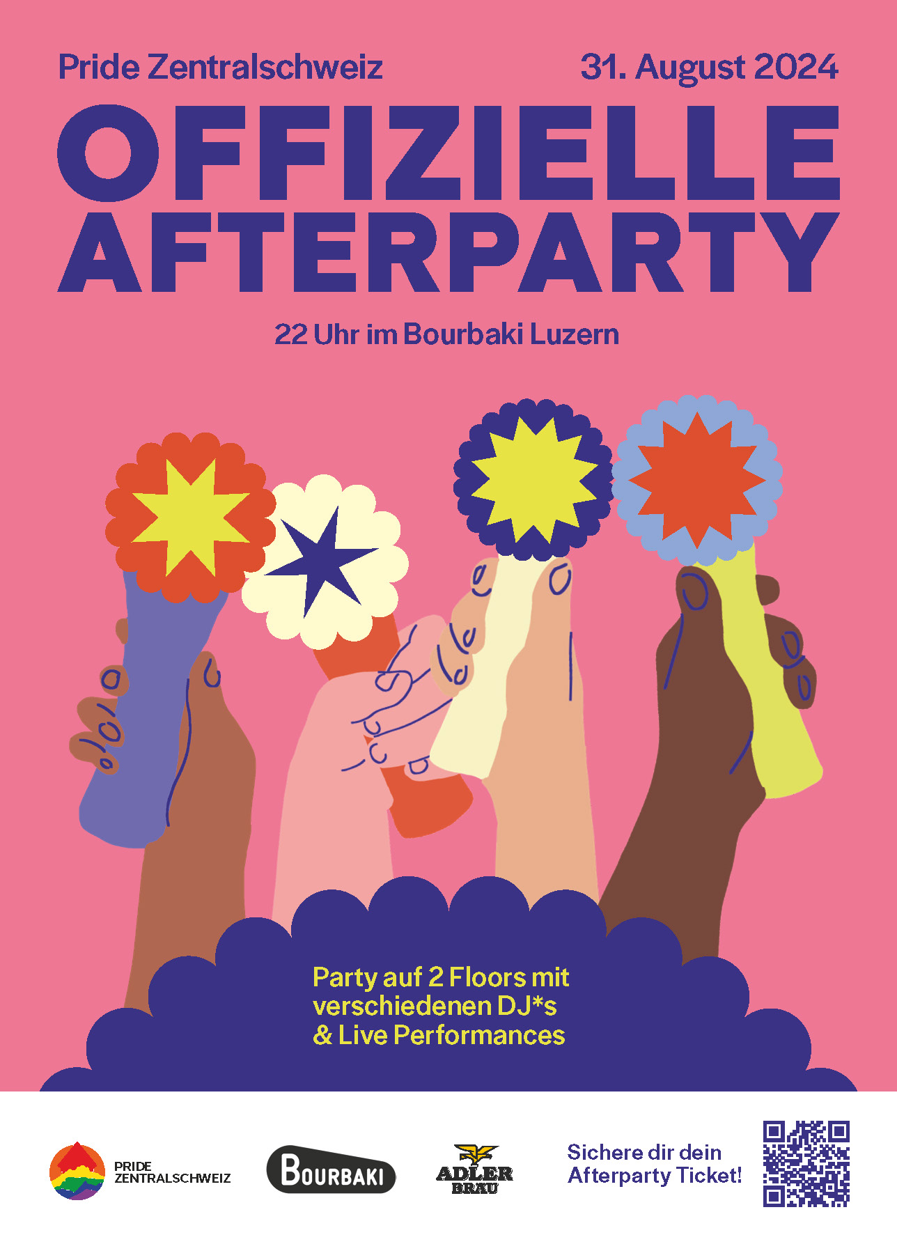 Pride Zentralschweiz Afterparty Aug 31 31. August 2024, 22:00 – 4:00 Pride Zentralschweiz Afterparty CHF 20 – CHF 30