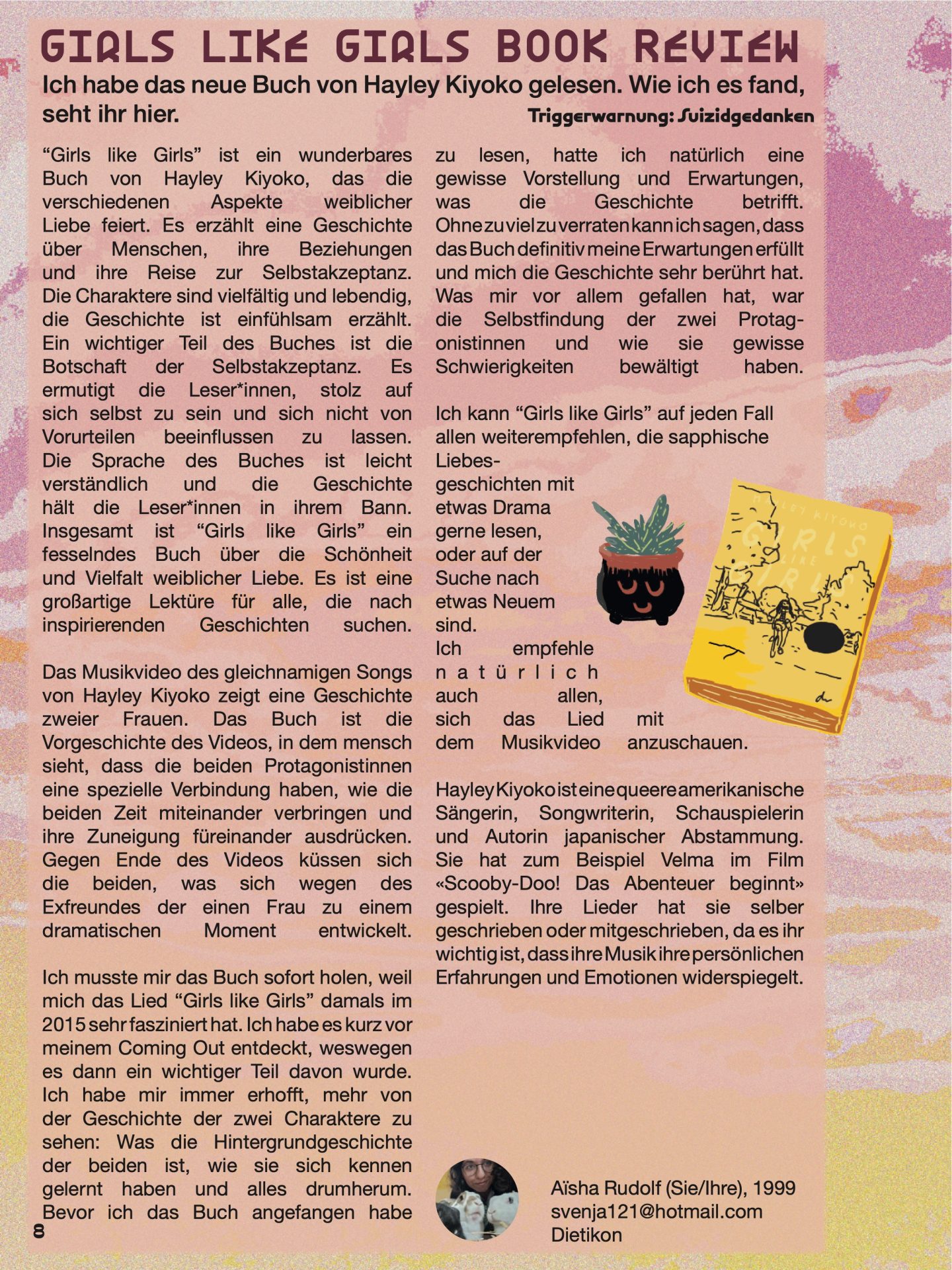 Ich kann “Girls like Girls” auf jeden Fall allen weiterempfehlen, die sapphische Liebesgeschichten mit etwas Drama gerne lesen, oder auf der Suche nach etwas Neuem sind. Ich empfehle natürlich auch allen, sich das Lied mit dem Musikvideo anzuschauen.