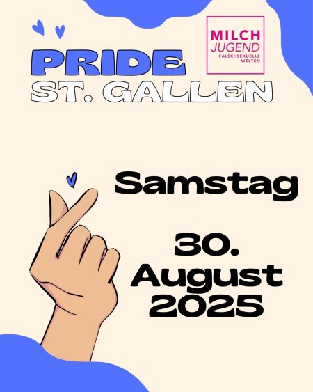 Veranstaltungskategorien: Austausch · Festival · Pride Pride St. Gallen 30. Aug. In St. Gallen findest du die Milchjugend am Samstag, dem 30. August an der Pride St. Gallen als Laufgruppe und mit einem Stand gemeinsam mit du-bist-du auf dem Festivalgelände. Weitere…