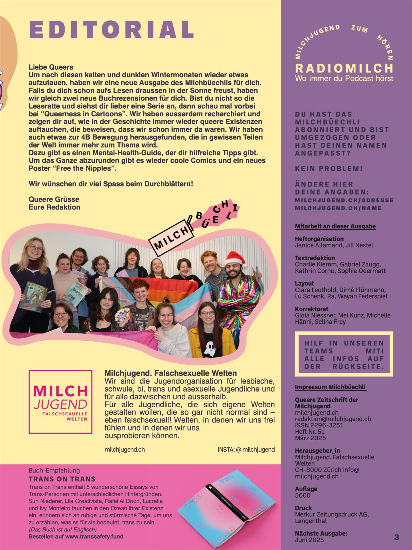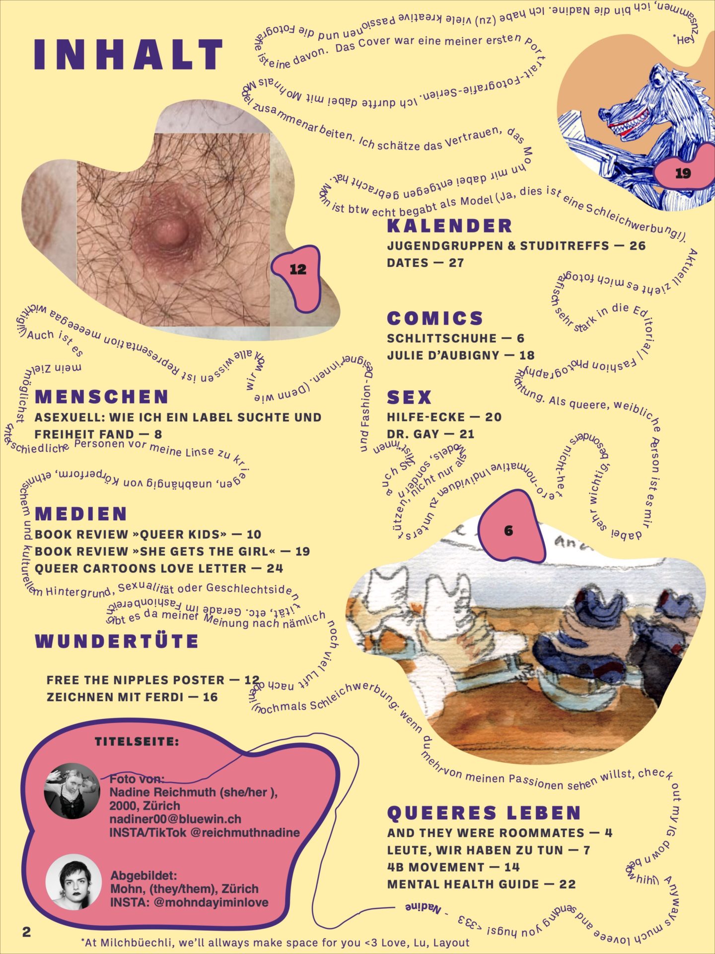 Falls du dich schon aufs Lesen draussen in der Sonne freust, haben wir gleich zwei neue Buchrezensionen für dich. Bist du nicht so die Leseratte und siehst dir lieber eine Serie an, dann schau mal vorbei bei “Queerness in Cartoons”. Wir haben ausserdem recherchiert und zeigen dir auf, wie in der Geschichte immer wieder queere Existenzen auftauchen, die beweisen, dass wir schon immer da waren. Wir haben auch etwas zur 4B Bewegung herausgefunden, die in gewissen Teilen der Welt immer mehr zum Thema wird. Dazu gibt es einen Mental-Health-Guide, der dir hilfreiche Tipps gibt. Um das Ganze abzurunden gibt es wieder coole Comics und ein neues Poster “Free the Nipples”. Wir wünschen dir viel Spass beim Durchblättern!